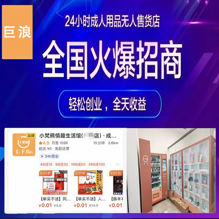 咨询【巨浪】情趣做成人用品,一人开N店:微商、淘宝、拼多多、京东、天猫、阿里巴巴、有赞、无人售货店、美团外卖、京东外卖、饿了么、线上线下都可做,将消费者一网打尽。