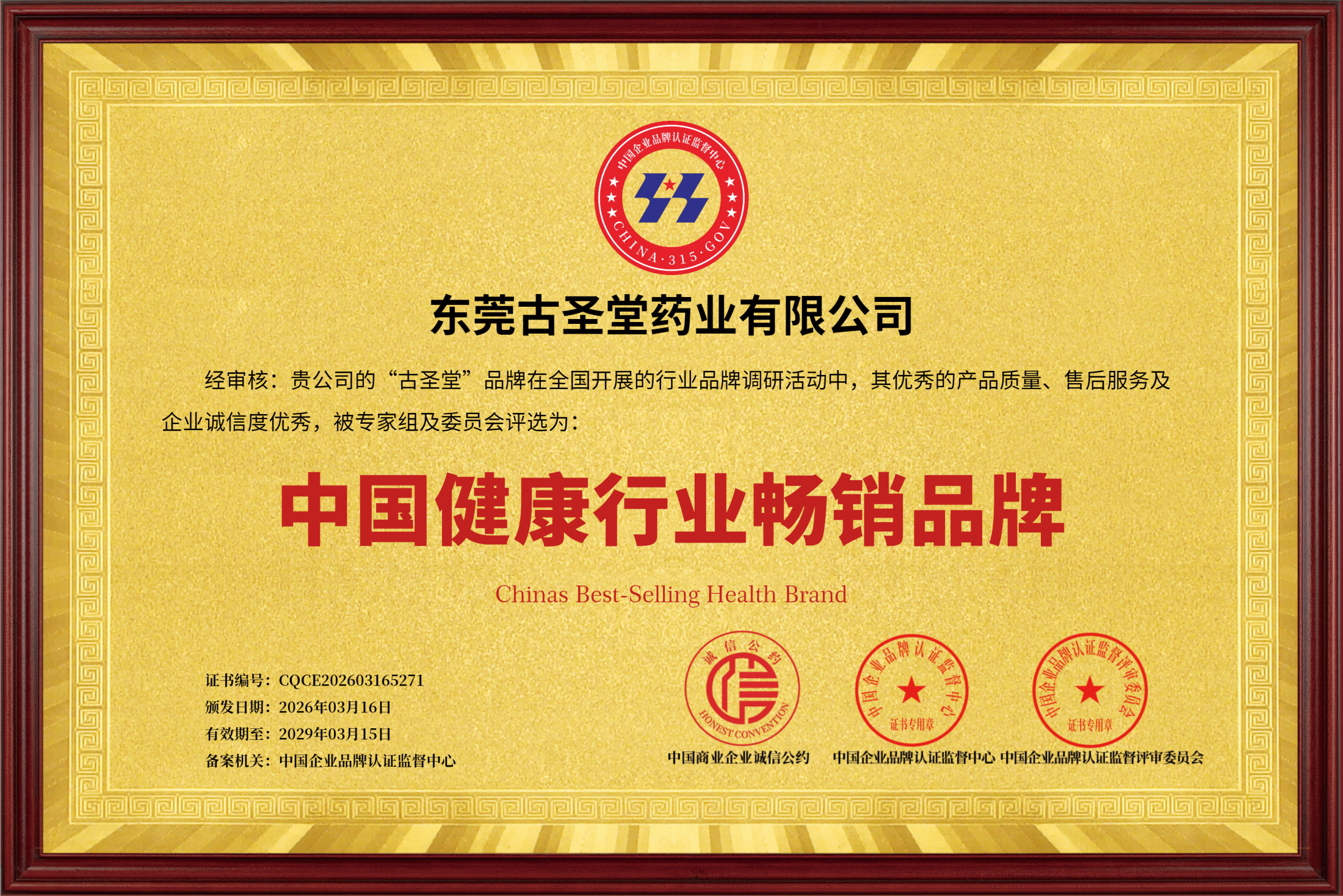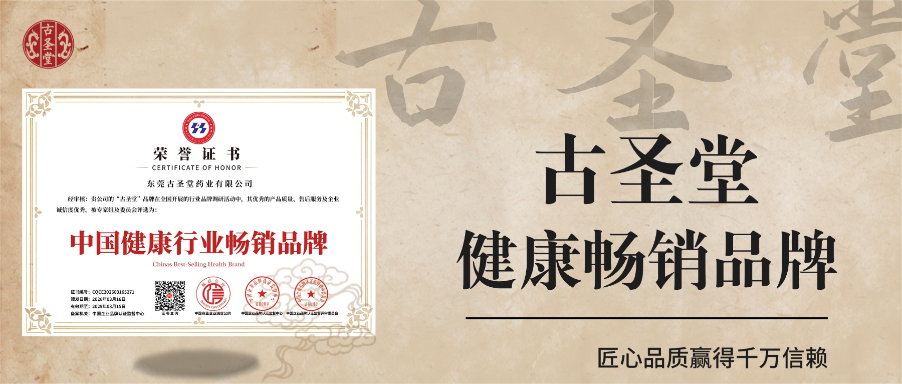 【荣誉加冕】古圣堂荣获“中国健康行业畅销品牌”称号