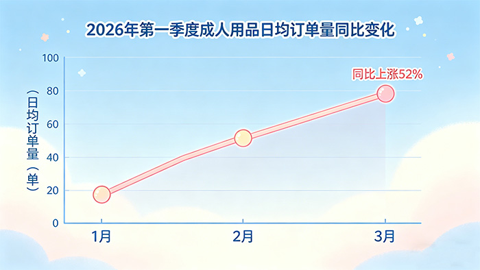 成人用品这行有个特点:夜间订单占比特别高。数据显示,晚间10点到次日凌晨2点的订单占了65%以上。所以不用全天盯店,高峰期保证有人接单就行。2026年第一季度,成人用品类目日均订单量同比上涨52%,需求端还在涨。