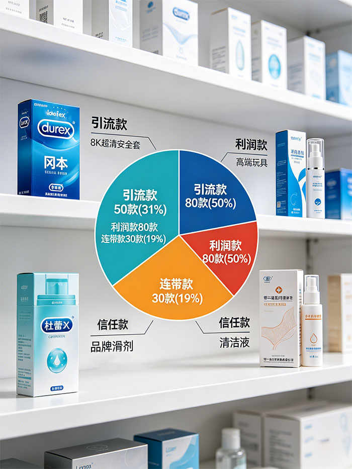这类占大头。中高端玩具、品牌润滑剂、有设计感的内衣,放这一类。用户对价格不太敏感,更在意功能和品牌。不用跟竞品拼价,把详情页做好、正品保障说清楚,利润空间自己留。