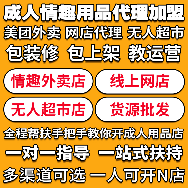 提供:一手进货价的货源、技术性的服务、和运营性服务,二类医疗办理指导,授予代理商开网店、实体店资质证件,包括但不限于:开店、装修、上架、美工、店铺定位、产品定位、选品、店内活动、产品活动等。趣乐爱成人用品合伙人代理项目,运营一对一指导服务,提供厂家一手货源,低价供货,支持一件发货。在线留言或者“拨打电话159 1571 5145同微信”我们会马上联系您!欢迎实地考察项目!