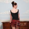 口设计,诱人双峰娇巧得挺立着;超短的贴身窄裙,裙身红色方格自然褶皱花边点缀,下摆自然分开设计;整体搭配性感撩人且不失