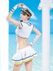 感觉,配套超短裙白色及蓝色镶边透纱质地,同质地的手套,帽子,内裤,更让人心弦波动。