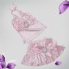 **款式介绍:淡的粉色,非常甜美的颜色,产品采用上下分体设计,能更好的展示身材曲线。肩带才有系带式可以自由调节,胸下围