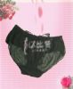 **款式介绍:低腰性感黑色小平角裤,前片镶嵌着一只性感的黑纱蝴蝶,做工精致,双层黑纱交叠刺绣,缀出蝶儿飞舞的翅膀,闪烁