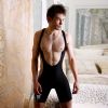 男款:男是情趣内衣,采用连体套装设计,黑色泳装面料紧紧贴合在健美的身躯上,包裹出雄壮的力量;背部立体剪