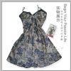 **款式介绍:此款裙装,底色是金黄色,搭配深蓝色大花,凸显出高贵、奢华、典雅。肩带可随意调节,深V胸部设计,让你的胸部