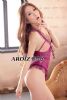 整款内衣为浪漫的紫色面料。狭窄的蕾丝花边遮蔽了双肩,却无法遮挡她饥渴的心。丁字型的下摆设计,让嫩滑的臀部大胆秀出,给人以无限的遐想空间。