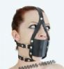 本品由牛皮精工制作,关键部位镶有铆钉。马具型设计,面罩里面有固定口塞,不容易被吐出,后面能与锁链结合。
