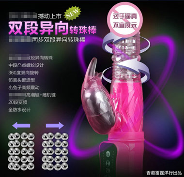 产品介绍:雷霆双排异向凸点螺纹震动摇摆转珠按摩棒G点刺激性用品 粉/紫。