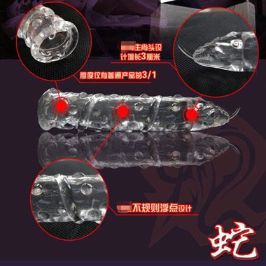 产品介绍:成人用品水晶硅胶套性用品 十二生肖蛇批发免费加盟避孕用品。