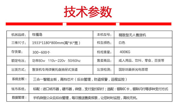 产品介绍: 性福岛精致型成人用品24小时无人自动售货机加盟。
