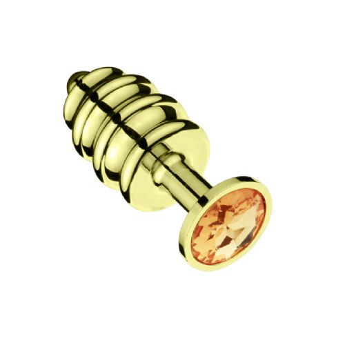 - 成人情趣用品螺纹肛塞 厂家批发直销男同后庭肛门栓大小号金黄色