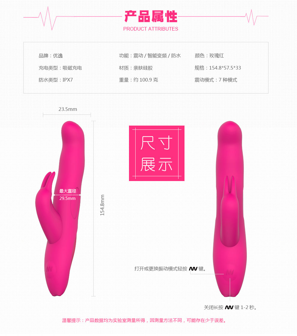 产品介绍: 优逸(YOUYI)多功能情趣用品震动棒爱兔H 玫红色-女用器具。