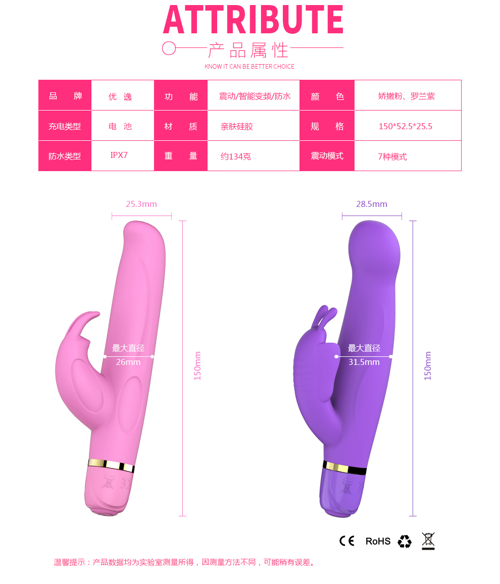 - 优逸(YOUYI)多功能情趣用品震动棒爱兔H 玫红色-女用器具