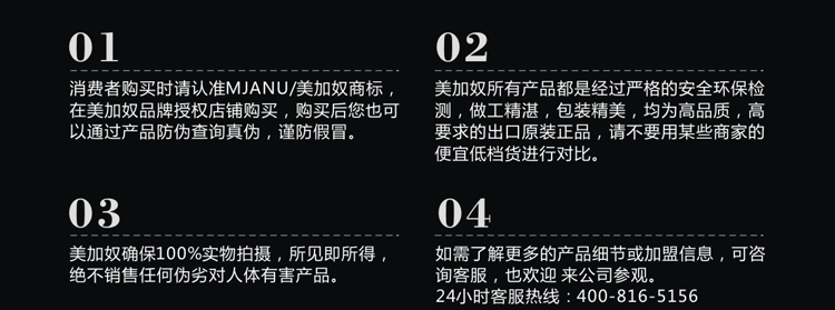 品质保障:美加奴所有产品用料均通过ROHS检测,产品做工精良。
