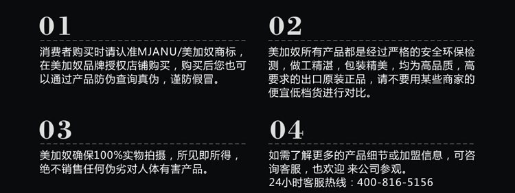 品质保障:美加奴所有产品用料均通过ROHS检测,产品做工精良。