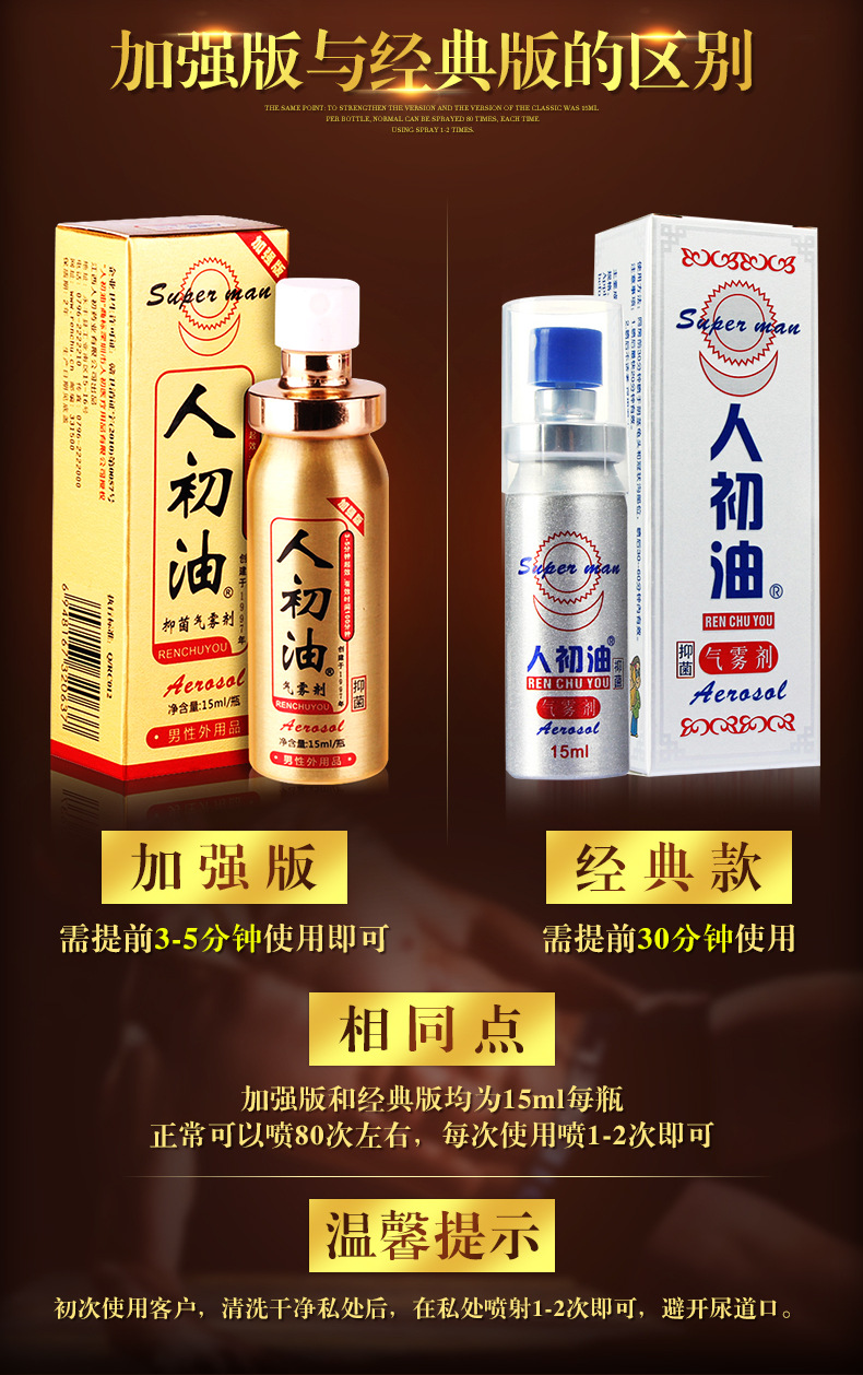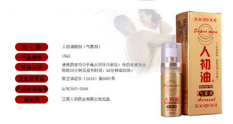 产品介绍: 人初油 喷剂外用神油防泄克星15ml喷剂情趣用品一件批发代深圳市坪山总代理坪山三洋湖逍遥阁成人用品店商行批发有限公司。