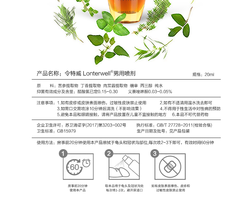 - 令特威15ml男性外用喷剂/湿巾招商代理加盟 男用喷剂OEM贴牌代加工