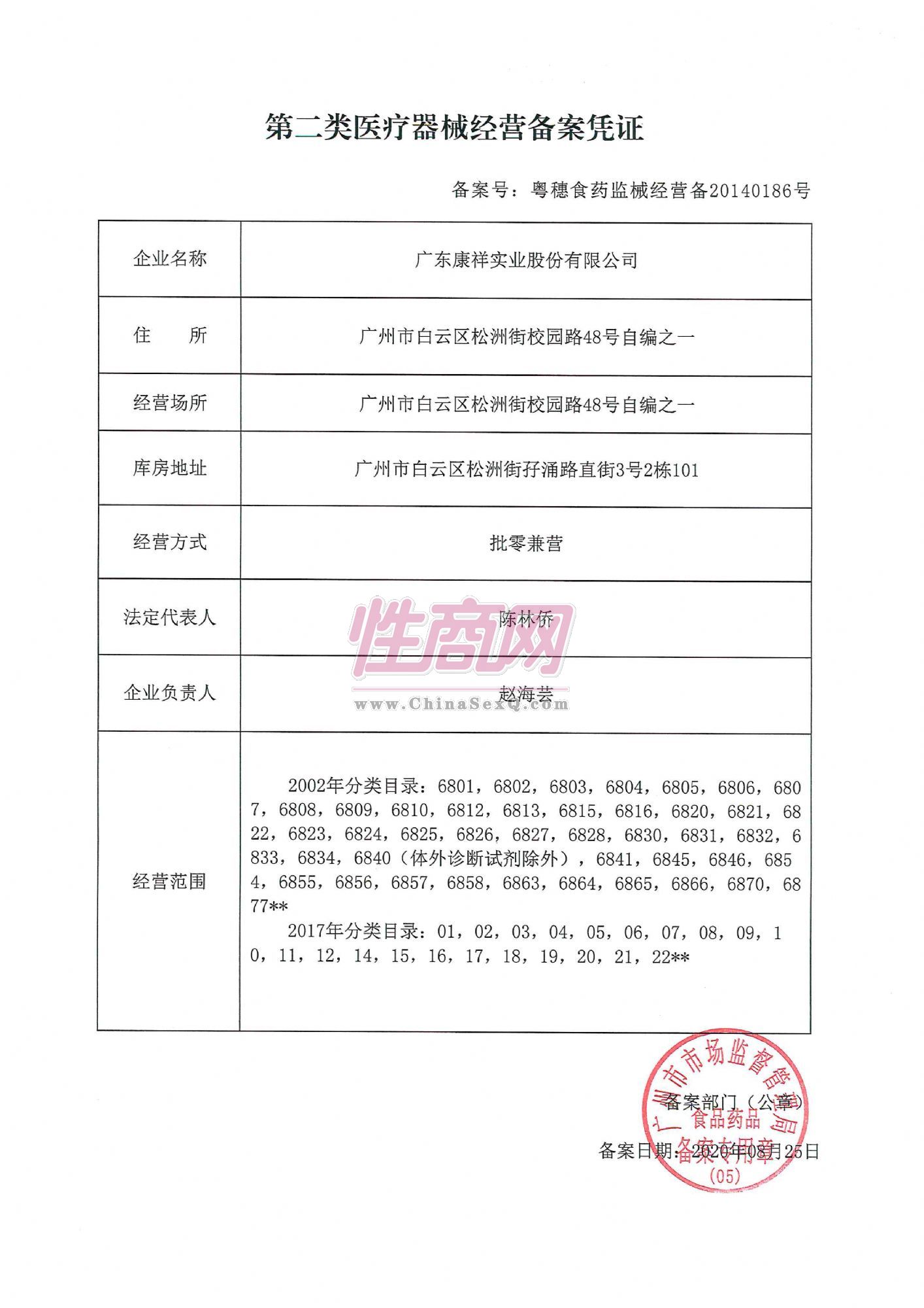 第二类医疗器械经营备案凭证