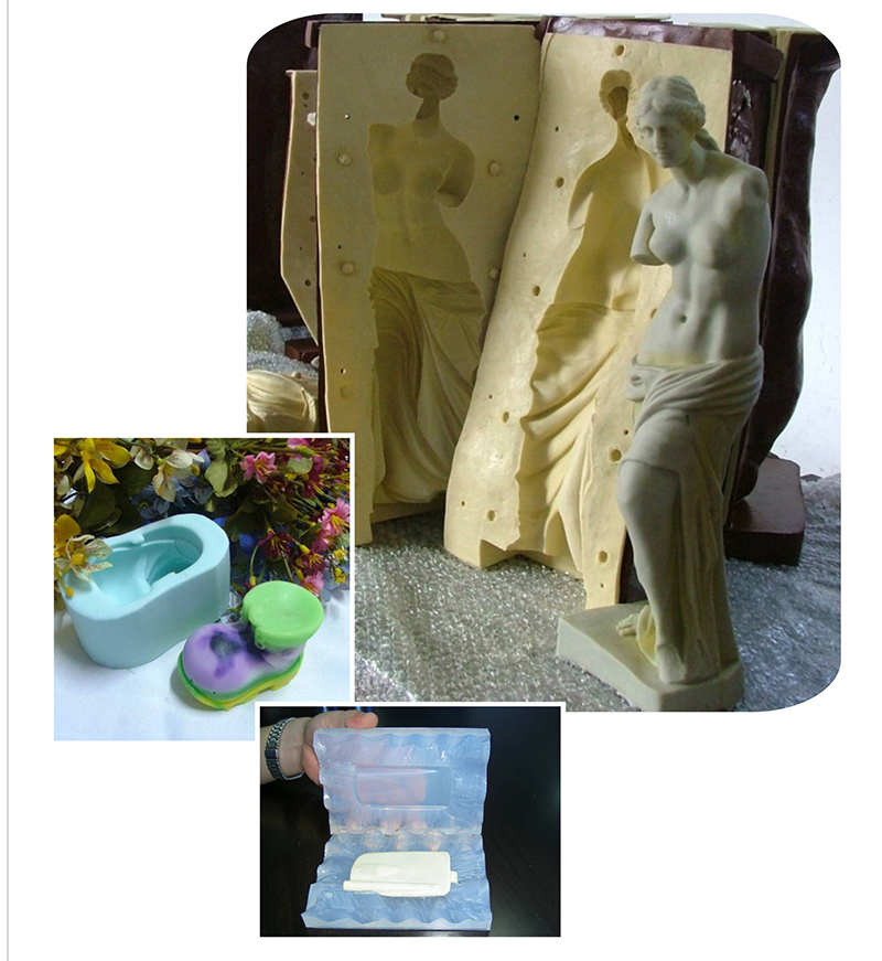 广泛用于玻璃树脂(POLYSTER)、工艺品波丽树脂、环氧树脂、聚氨酯成型产品、PU发泡树脂之装饰品及工艺品的复制、仿古家私、陶瓷、工艺蜡烛、人造塑像、艺术品复制、人造仿天然石、鞋模、灯饰艺品、PU发泡树脂和低熔点合金等材料制品成型模具,还可以制作印刷工业的转印板等各种制作模具材料,更可以直接用于制品。