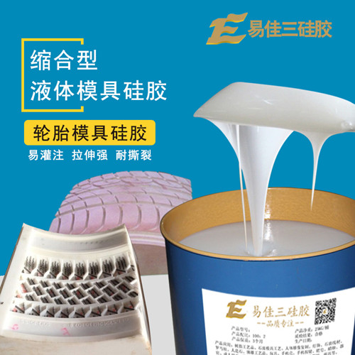 轮胎模具硅胶一般采用的是缩合型模具硅胶,也有客户喜欢用加成型模具硅胶,两者均为双组份硅胶,液体硅橡胶;A 组份是可流动性的液体硅胶,B 组份是固化剂,二者混合后能快速成型。其中,缩合型硅胶为非食品级,也就是工业级硅胶,加成型硅胶为食品级硅胶。下述推荐的是缩合型轮胎模具硅胶。