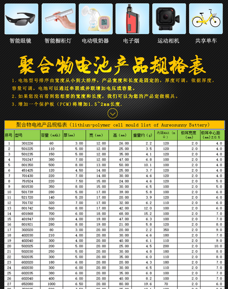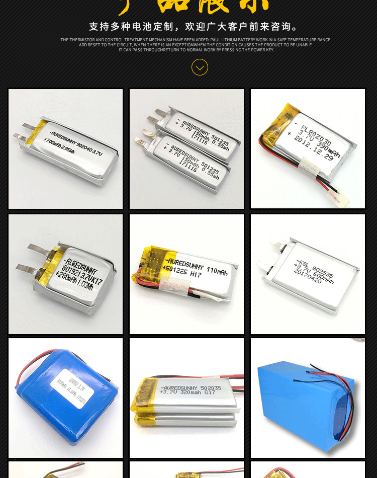 - 503040 3.7V600mah情趣振动棒用电池生产厂家100多个型号满足
