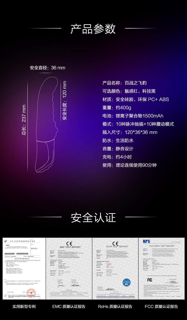 产品介绍: A-LOVING百战之飞豹磁动力抽插震动棒。
