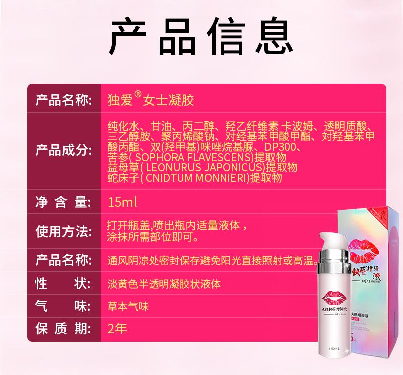 产品介绍: 独爱嘴唇女士凝胶15ml。