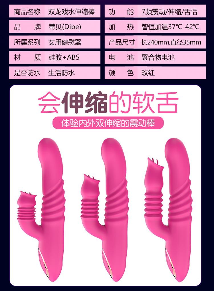 产品介绍: 蒂贝 双龙戏水双伸缩加温震动棒女用自慰器。