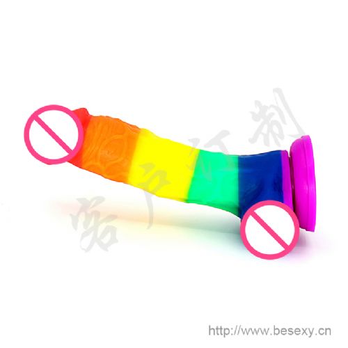 - 比色Besexy 彩虹旗彩虹阳具/仿真液态硅胶-女