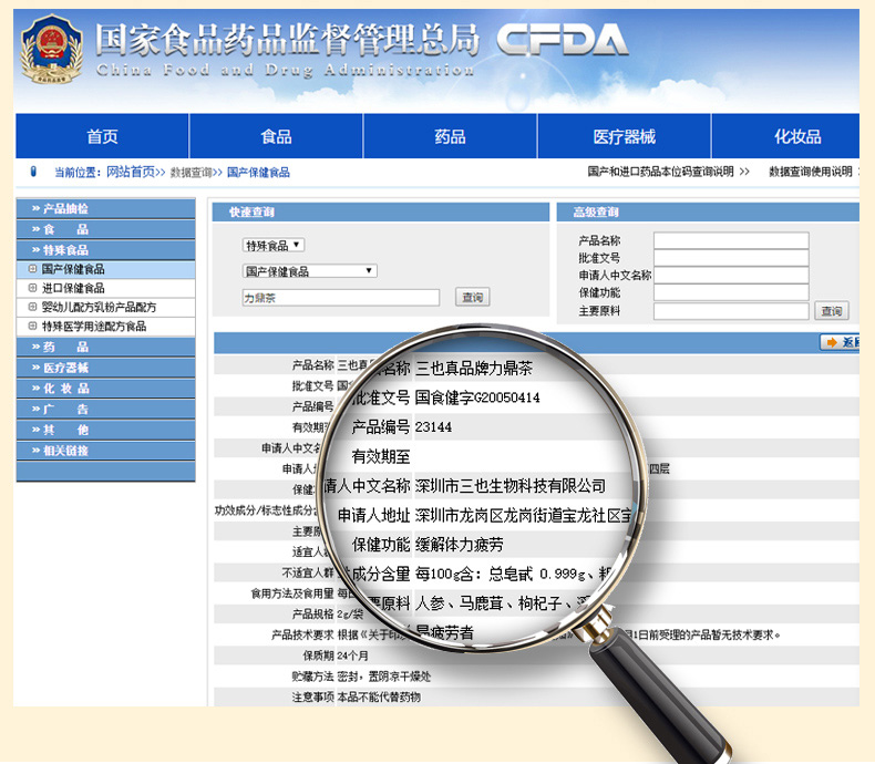 A1:力鼎茶不是药。力鼎茶是国家药品食品监督管理局批准生产的,带有“蓝帽子”的功能性保健品。