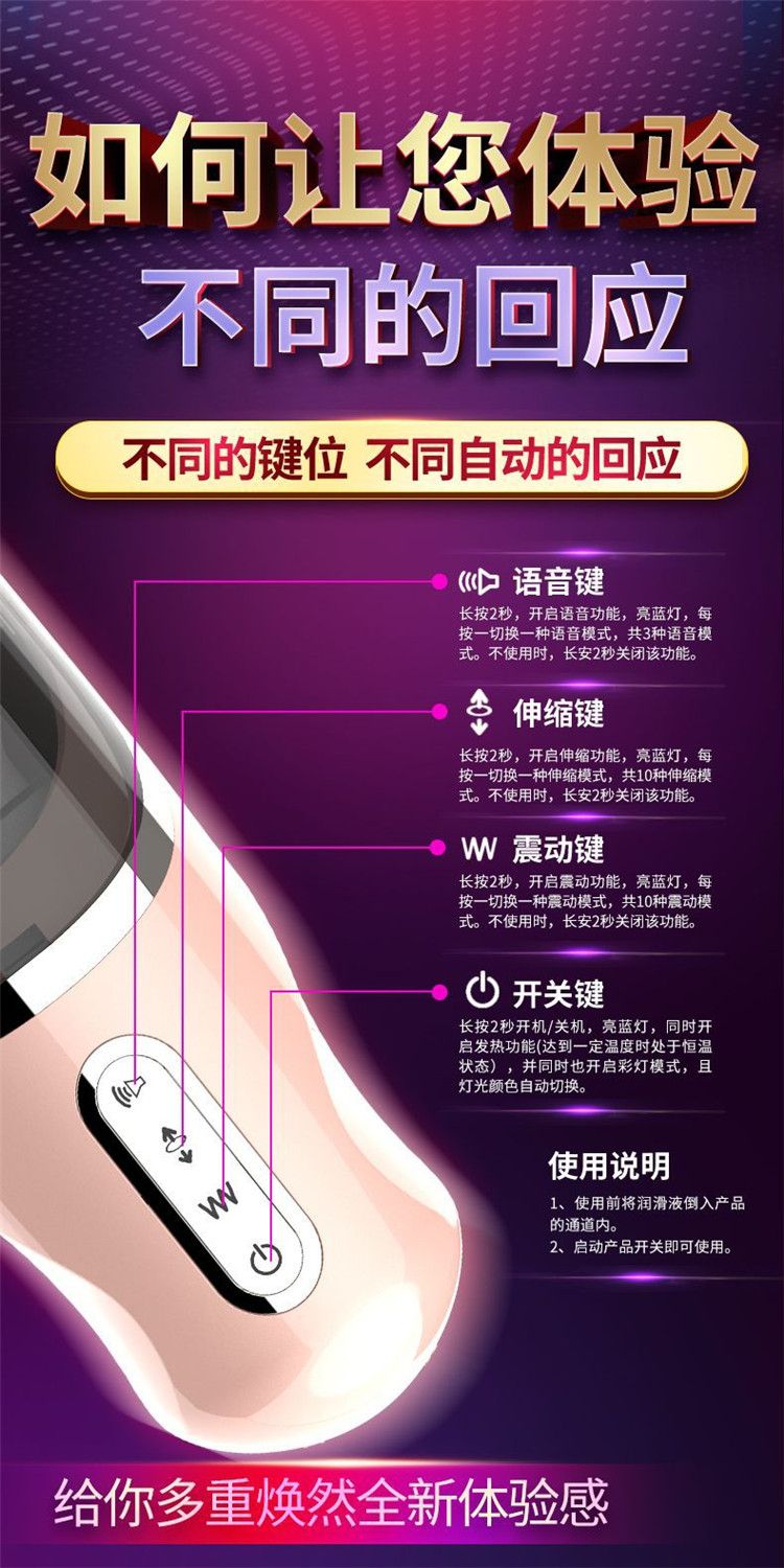 产品介绍: 聚品自动伸缩蠕动发音旋转男用飞机杯实体货源一件代发。