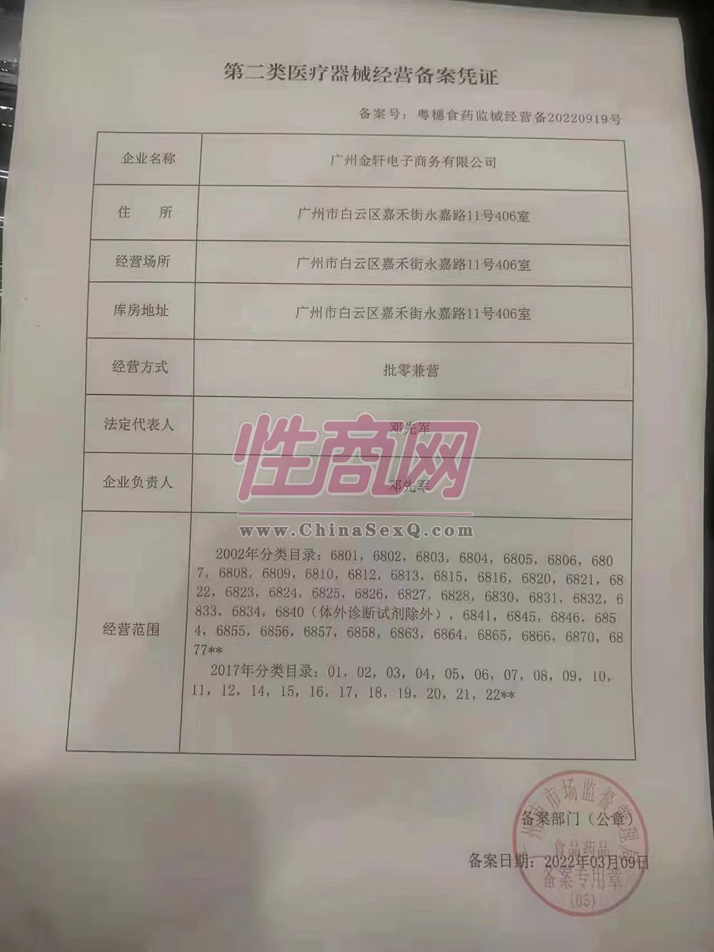 第二类医疗器械经营备案凭证