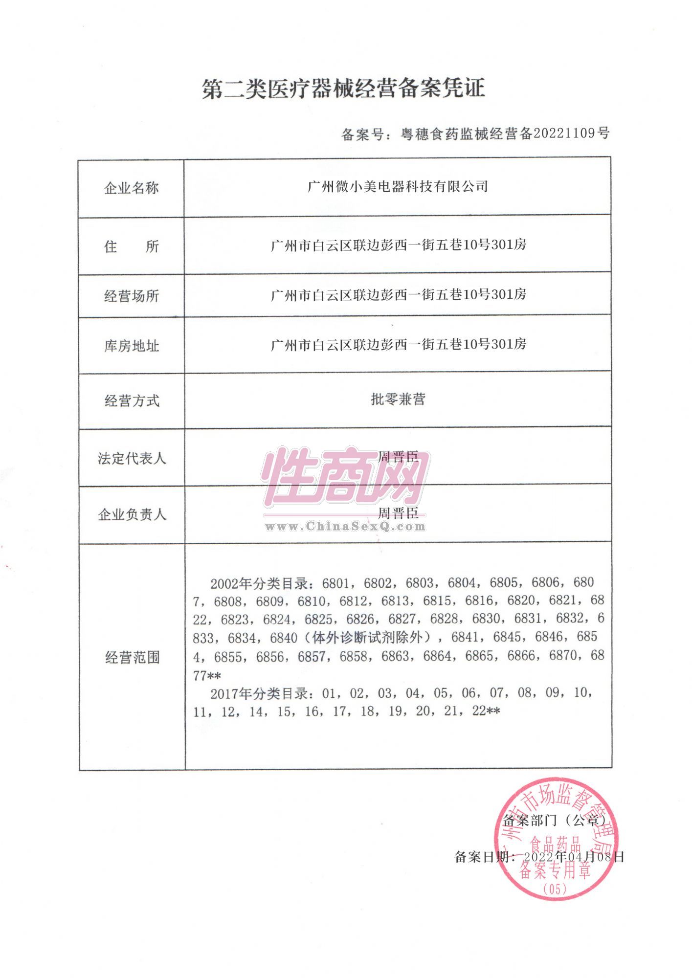 第二类医疗器械经营备案凭证