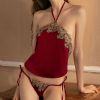 > 情趣内衣批发加盟迷人性感肚兜分体三点式套装
