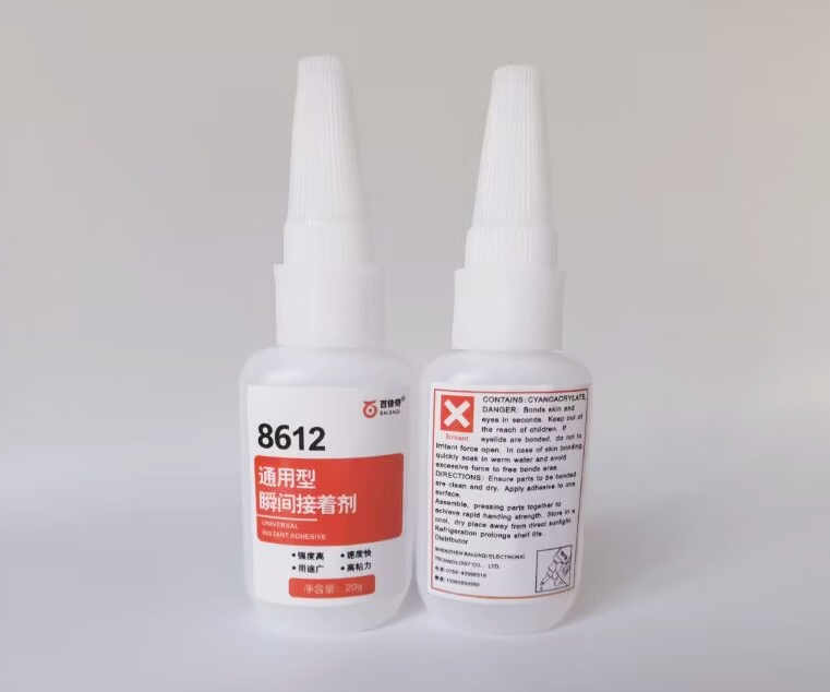 8612是一种单组份、透明、室温固化的胶水,具有耐水,耐高低温,耐老化的特点,适用于硅胶、橡胶、塑料(ABS、PC、PVC、TPE、TPR、TPU、TPV、PPS、亚克力、尼龙、玻纤等材料)、金属的自粘与互粘。胶水操作简便,粘接牢固后长期不脱落。