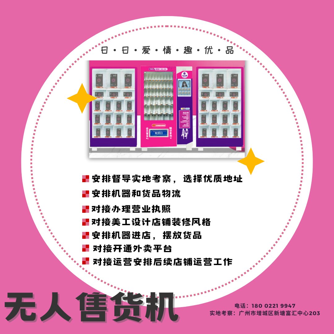 产品介绍: 日日爱情趣用品无人售货机全程专业服务0加盟费0服务费不需经验。