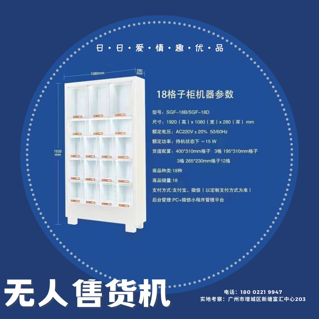 产品介绍: 日日爱情趣用品无人售货机18格子柜机器无加盟费厂家货源。
