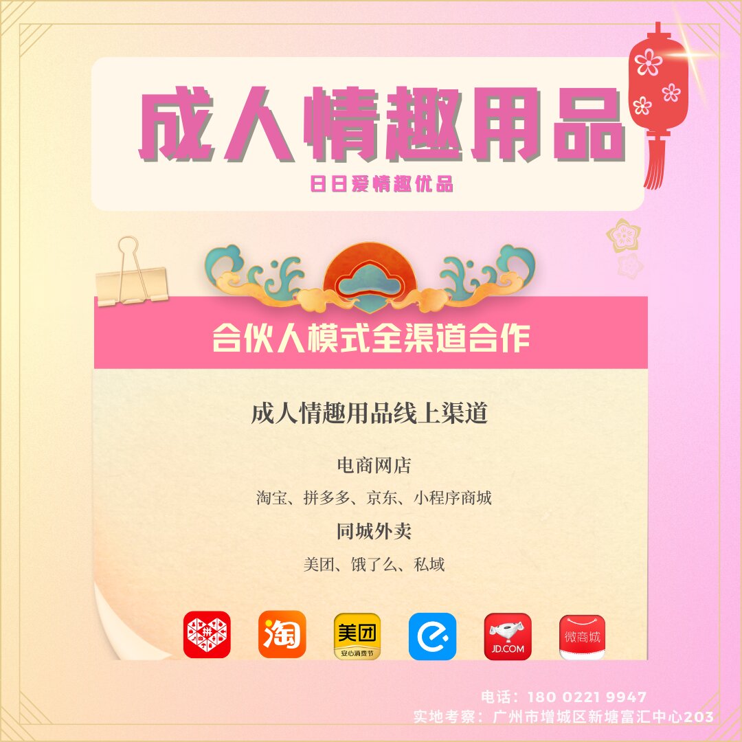 提供:低供货价的货源、技术性的服务、和运营性服务,二类医疗办理指导,授予代理商开网店、实体店资质证件,包括但不限于:开店、装修、上架、美工、店铺定位、产品定位、选品、店内活动、产品活动等,日日爱成人用品合伙人代理项目,运营一对一指导服务,提供厂家一手货源,低价供货,支持一件发货。在线留言或者“拨打电话180 0221 9947同微信”我们会马上联系您!欢迎实地考察项目!