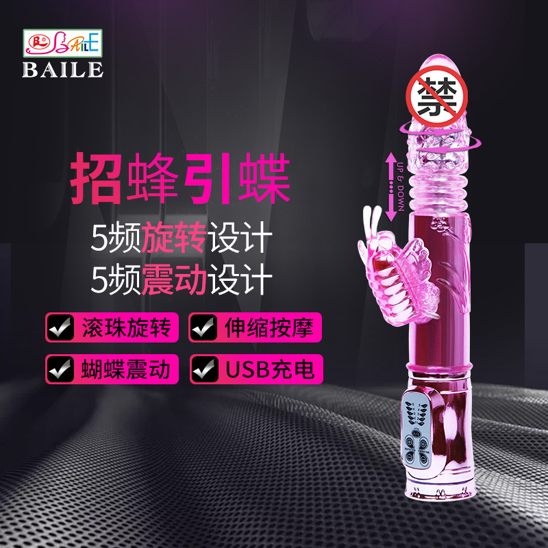 百乐招蜂引蝶转珠棒自动伸缩充电防水成人用品一件代发