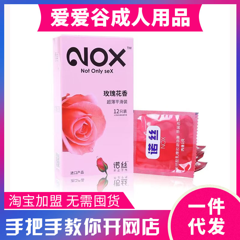 产品介绍: 诺丝玫瑰花香避孕套12只装安全套 成人用品货源加盟代理一件代。