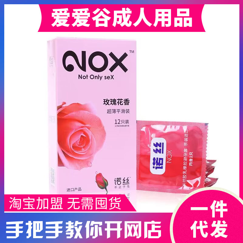 产品介绍: 诺丝玫瑰花香避孕套12只装安全套 成人用品货源加盟代理一件代。