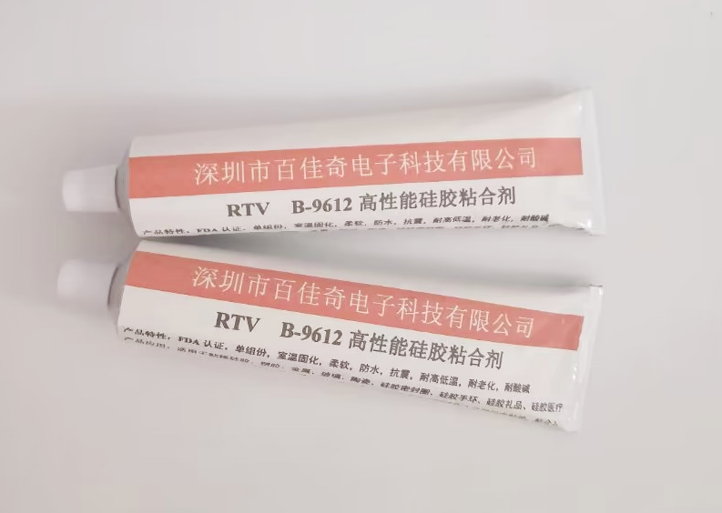 2、 慢干型9612硅胶胶水,适合于硅胶与ABS材料大面积粘接。胶水透明,具有防水,抗震,耐高低温,耐老化,耐酸碱的特点,完全固化后有韧性,可达撕裂硅胶也不脱胶的**