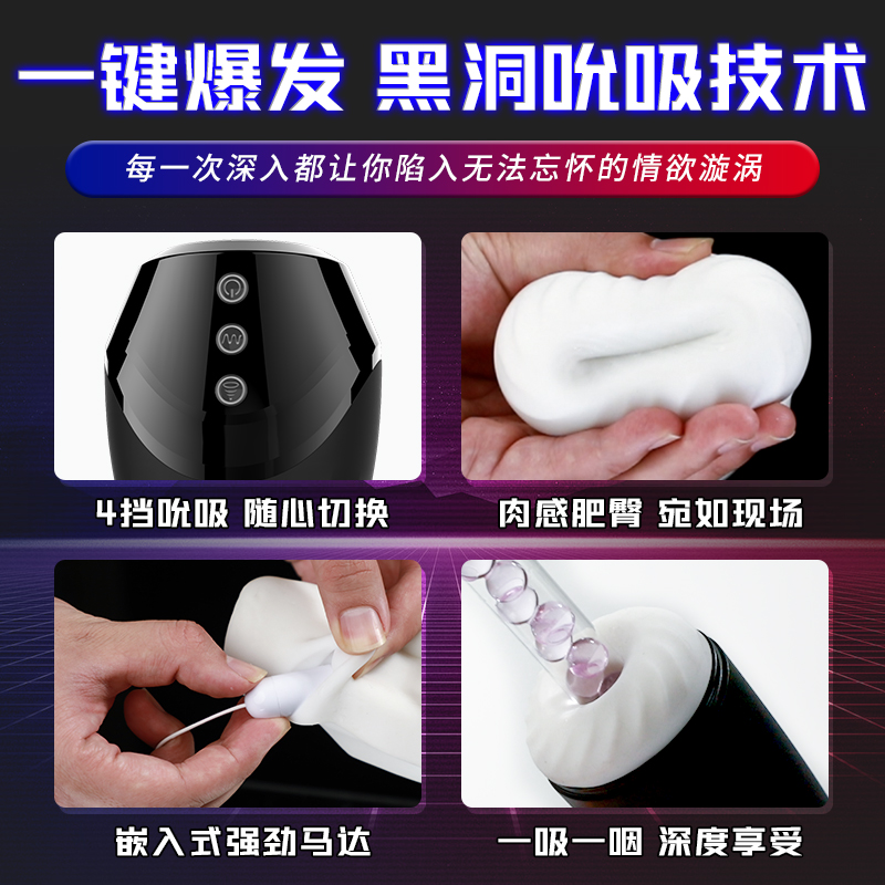 仙境暗夜 吮吸震动加温飞机杯-黑色。
