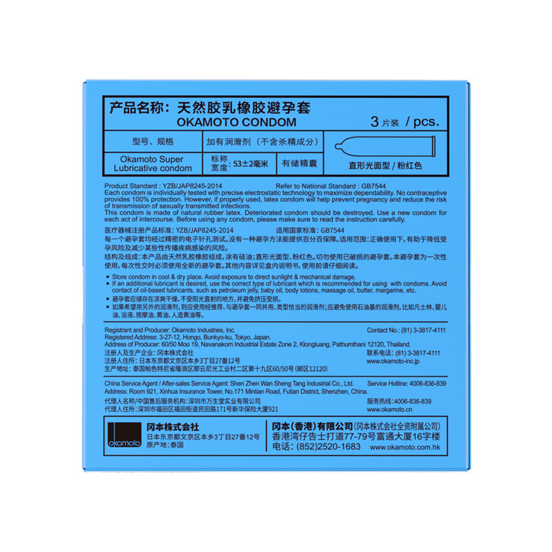 3S冈本超润滑避孕套。