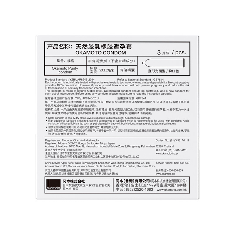3S冈本纯避孕套。