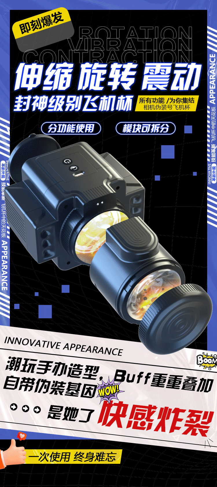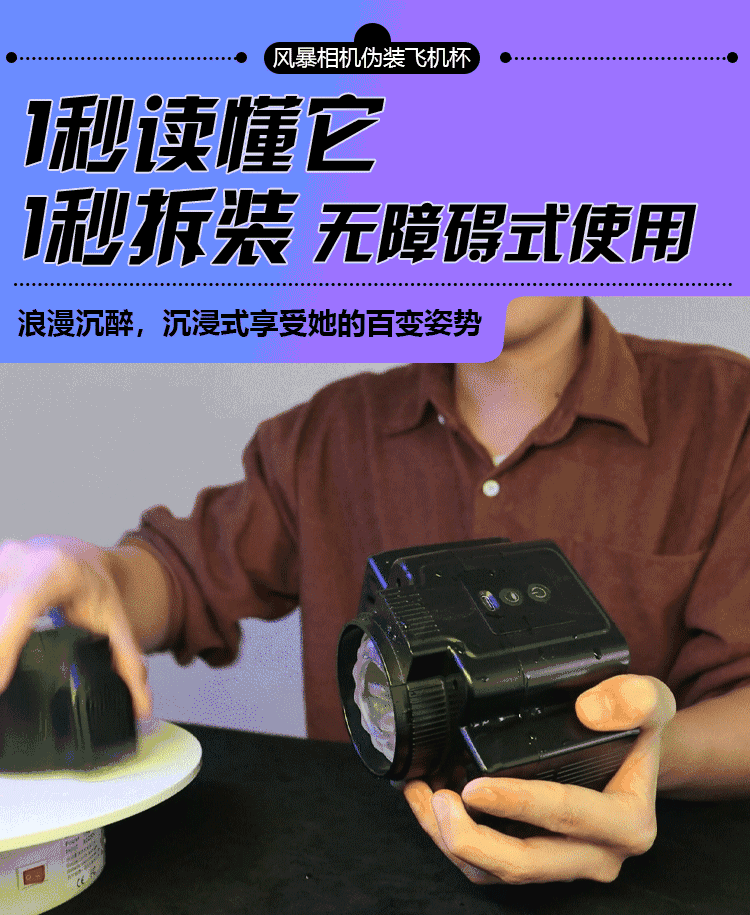 超灵感D06B相机震动伸缩旋转飞机杯(黑色)。