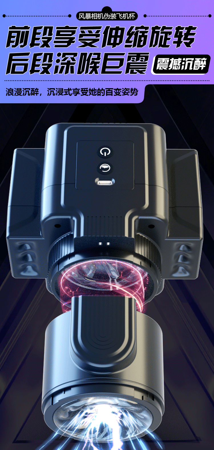 超灵感D06B相机震动伸缩旋转飞机杯(黑色)