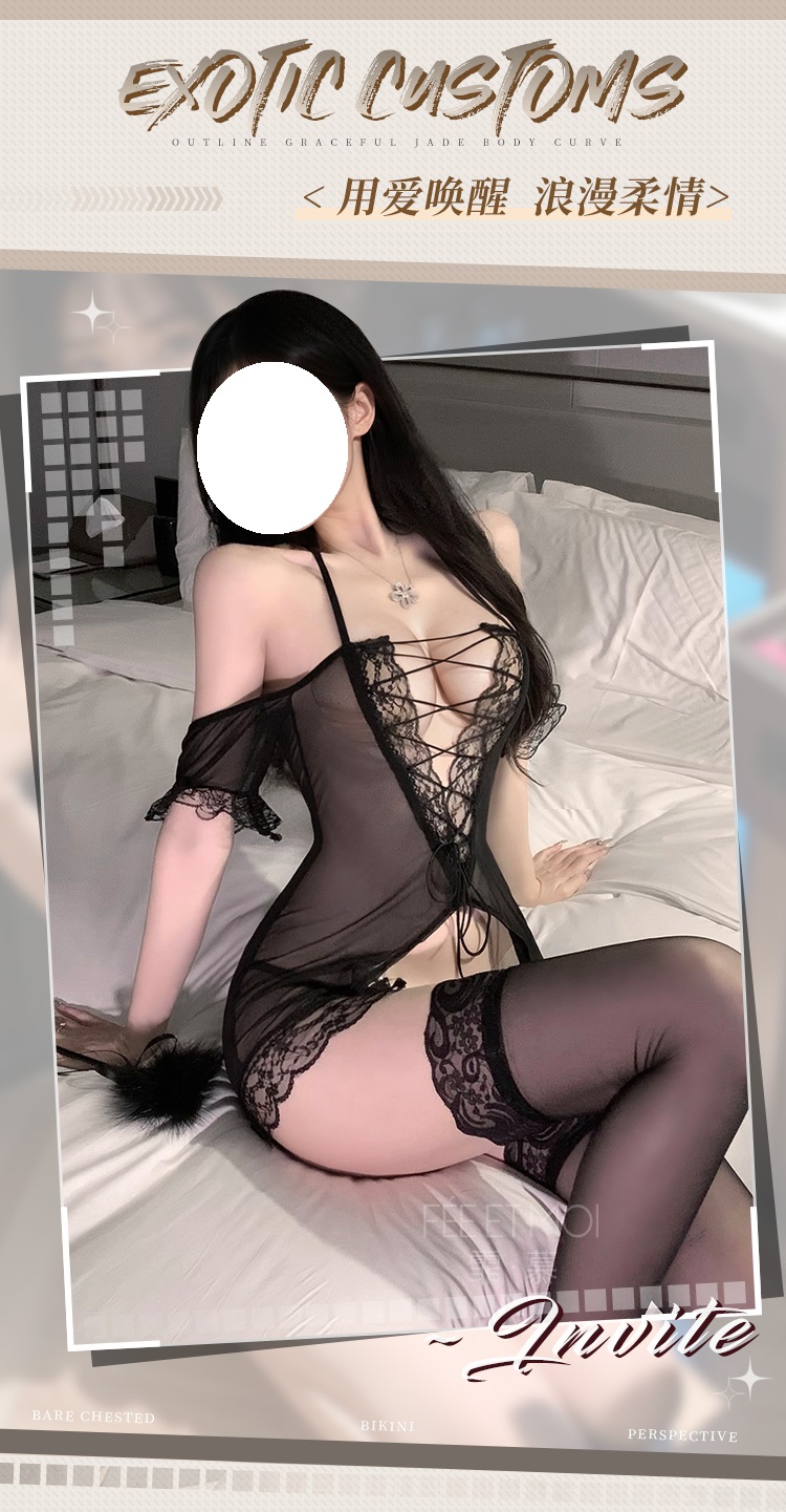 镂空露沟裸臀透视睡裙。